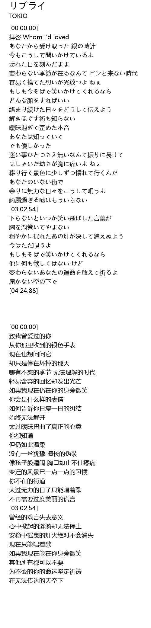 | [00:16.96] | あなたから受け取った 銀の時計 |
