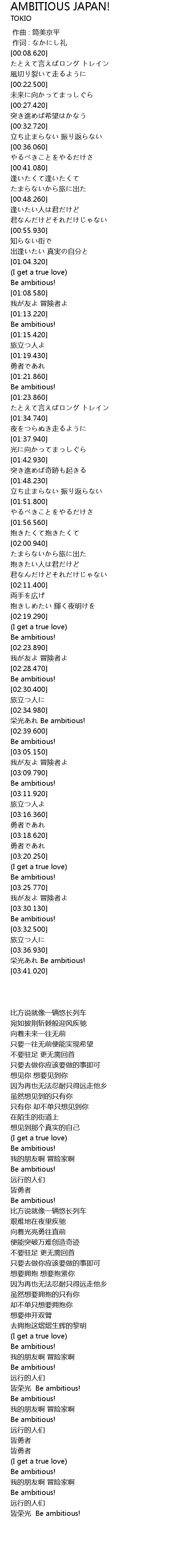 | [02:36.230] | 栄光あれ Be ambitious! |