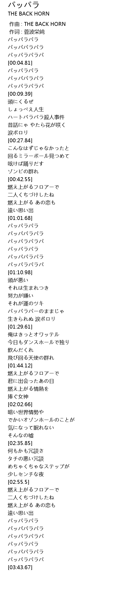 | [00:00.00] | zuò qǔ : THE BACK HORN |