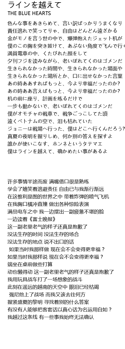 | [03:30.000] | 僕がオモチャの戦車で、戦争ごっこしてた頃 |