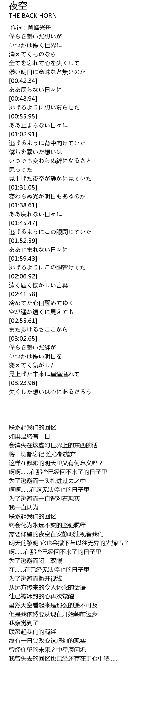 | [03:17.31] | 曾经仰望的未来之中星辰闪烁 |