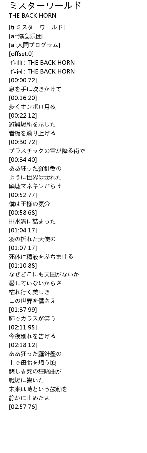 [ti:ミスターワールド] |