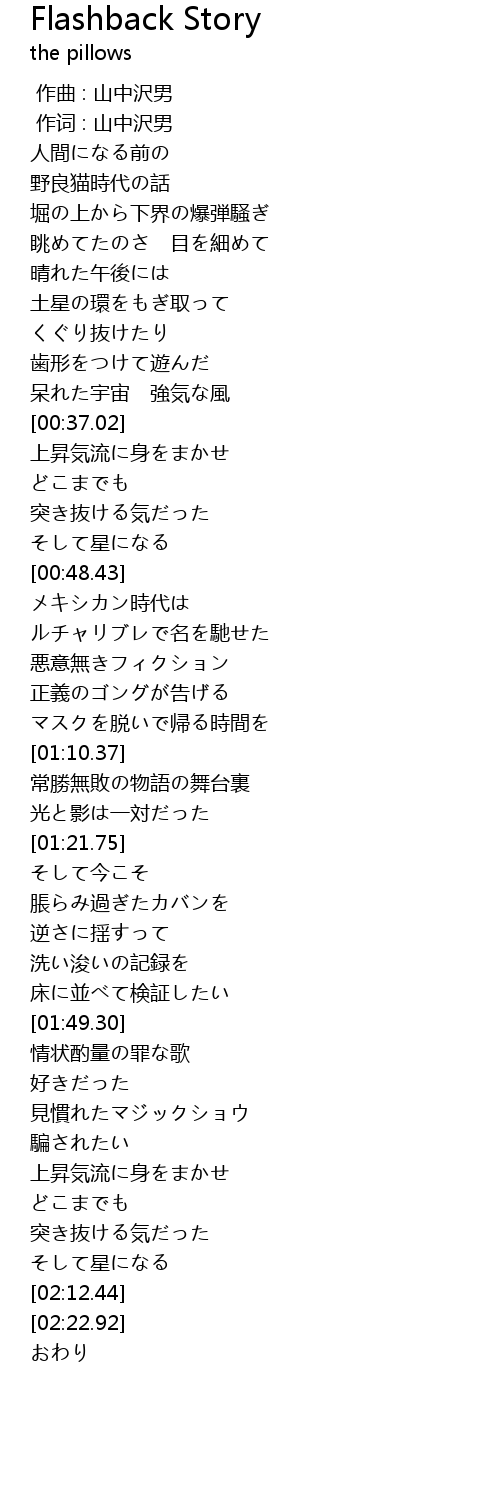 | [01:10.96] | 常勝無敗の物語の舞台裏 |