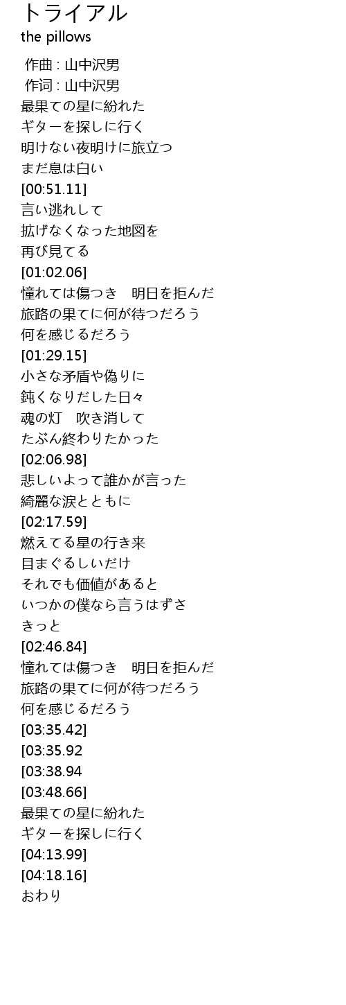| [03:22.70] | 旅路の果てに何が待つだろう |