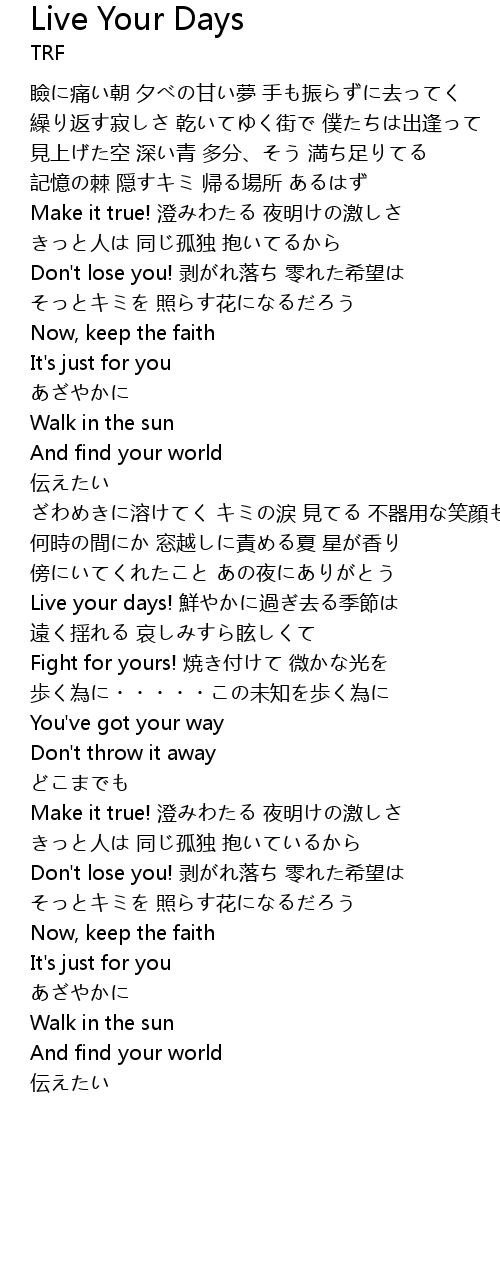 | Live your days! xiān guò qù jì jié | |