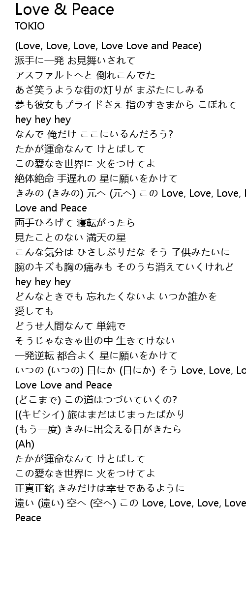 | [00:00.00] | (Love, Love, Love, Love Love and Peace) |