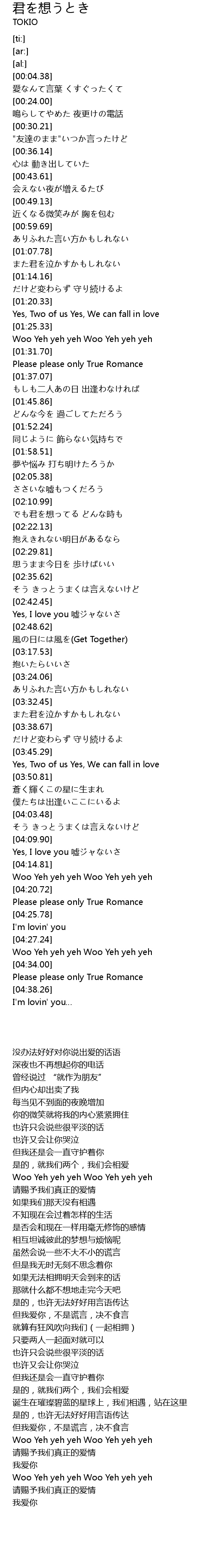 | [04:10.31] | Yes, I love you 嘘ジャないさ |