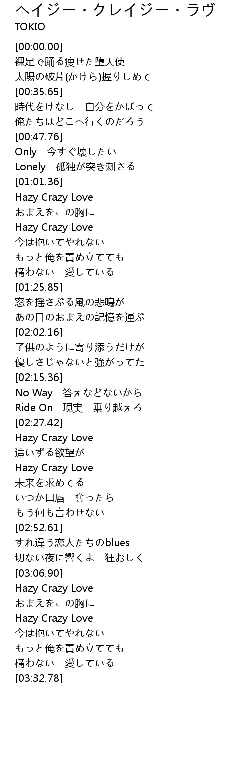 | [03:08.20] | Hazy Crazy Love |