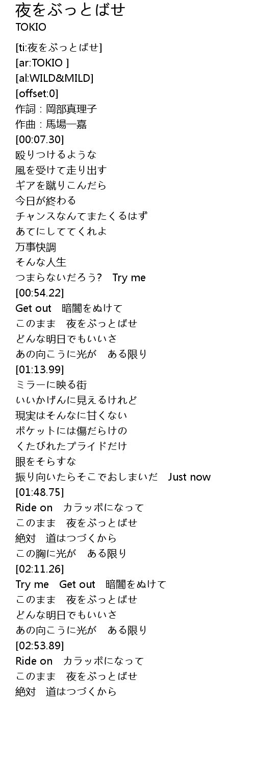 | [02:58.36] | このまま 夜をぶっとばせ |
