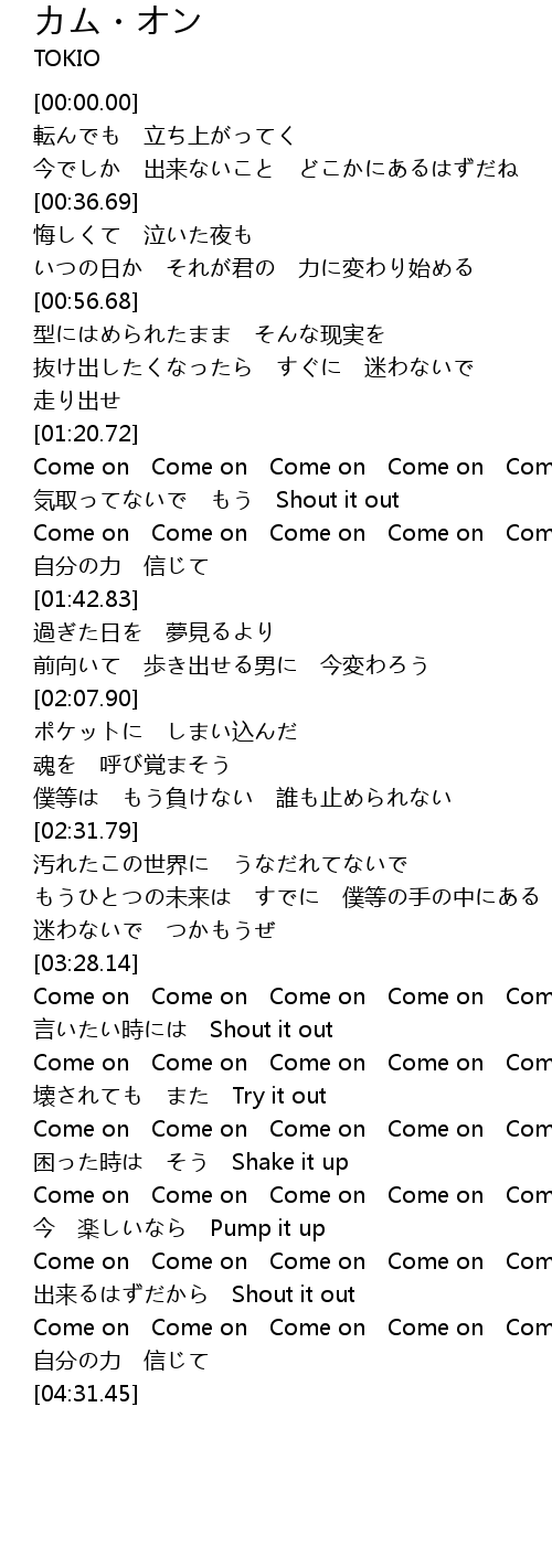 | [04:19.39] | Come on Come on Come on Come on Come on Hold on |