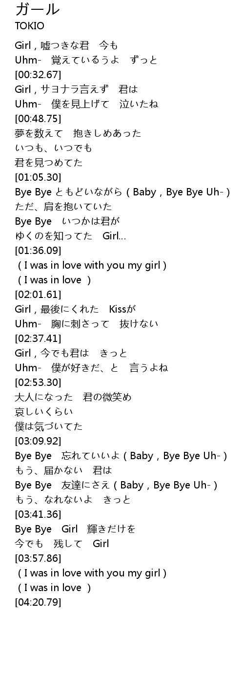 | [00:17.06] | Girl,嘘つきな君 今も |