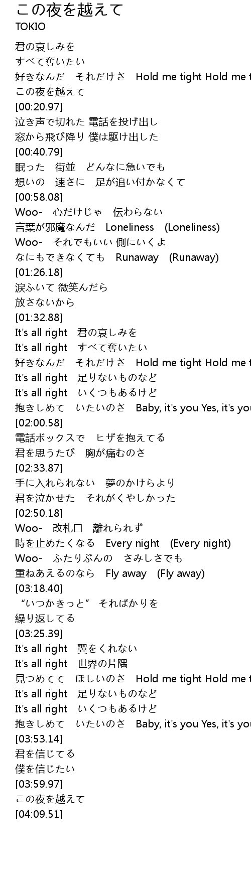 | [02:21.66] | 電話ボックスで ヒザを抱えてる |