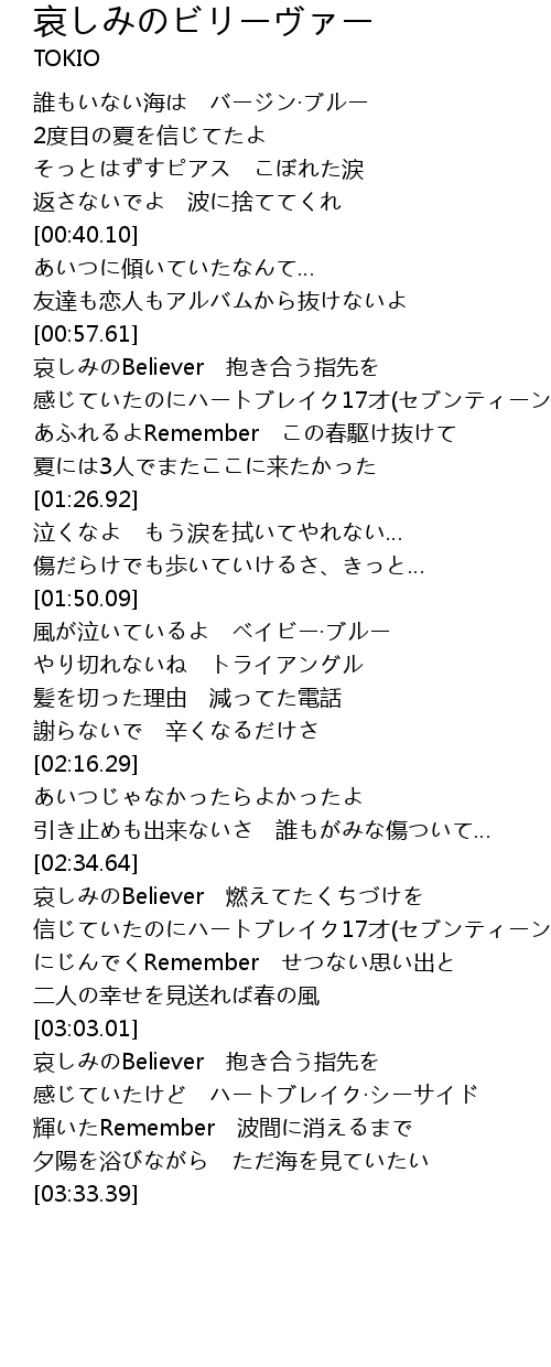 | [00:59.48] | 哀しみのBeliever 抱き合う指先を |