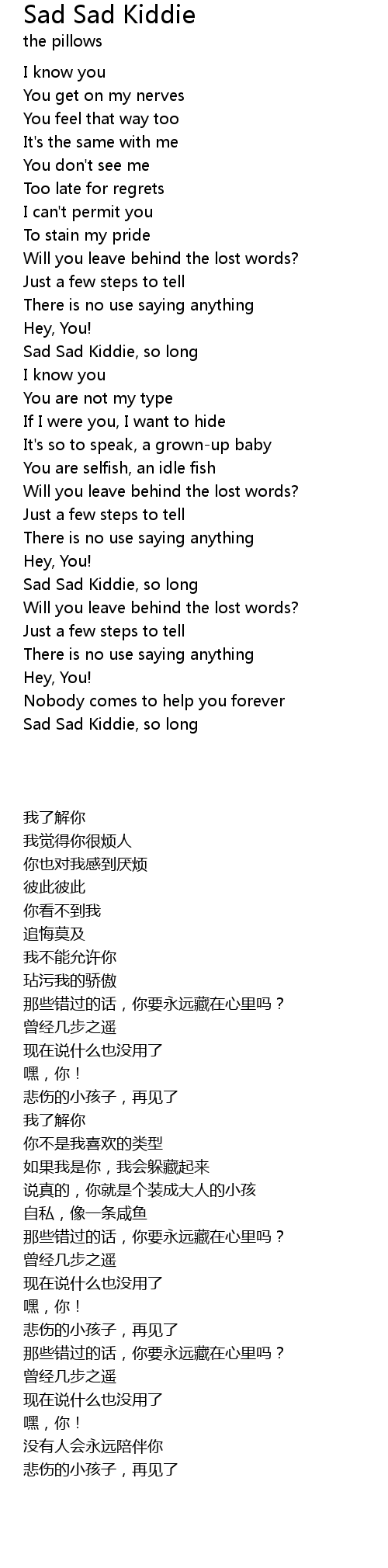 Sad Sad Kiddie, so long |