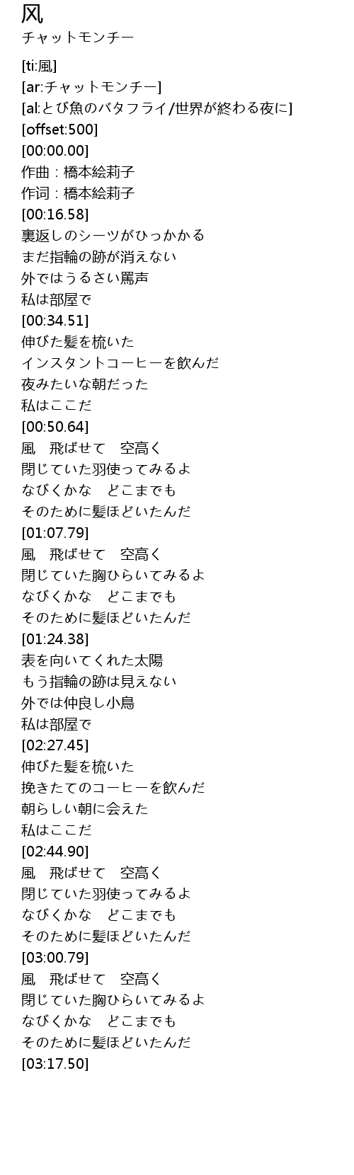 | [00:12.58] | 作曲:橋本絵莉子 |