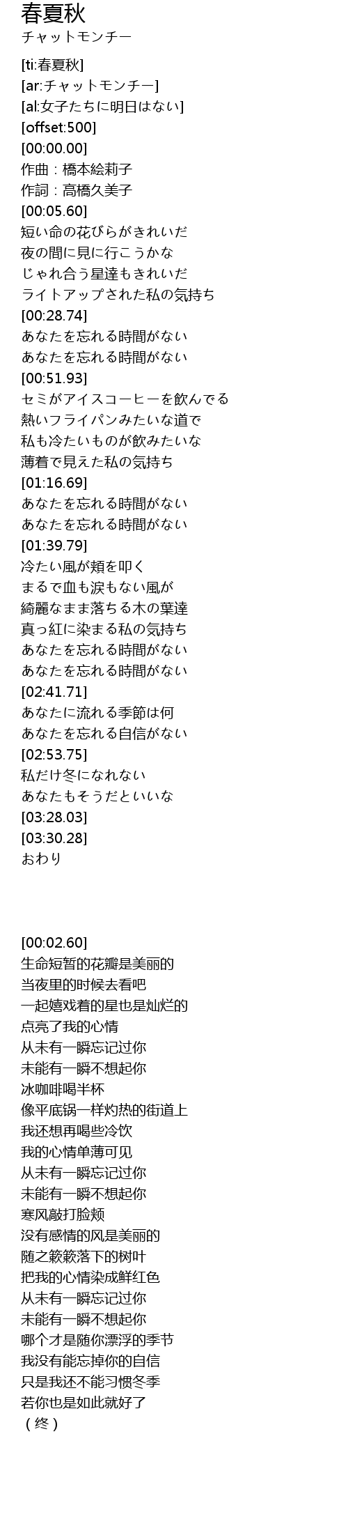 | [00:06.60] | 短い命の花びらがきれいだ |