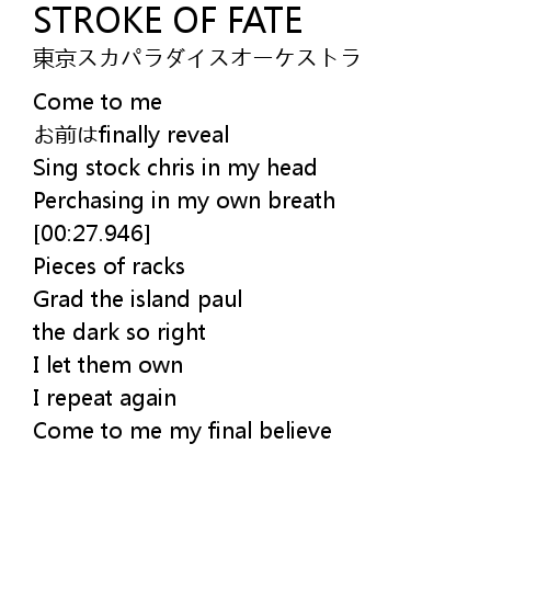 | 歌曲 | STROKE OF FATE |