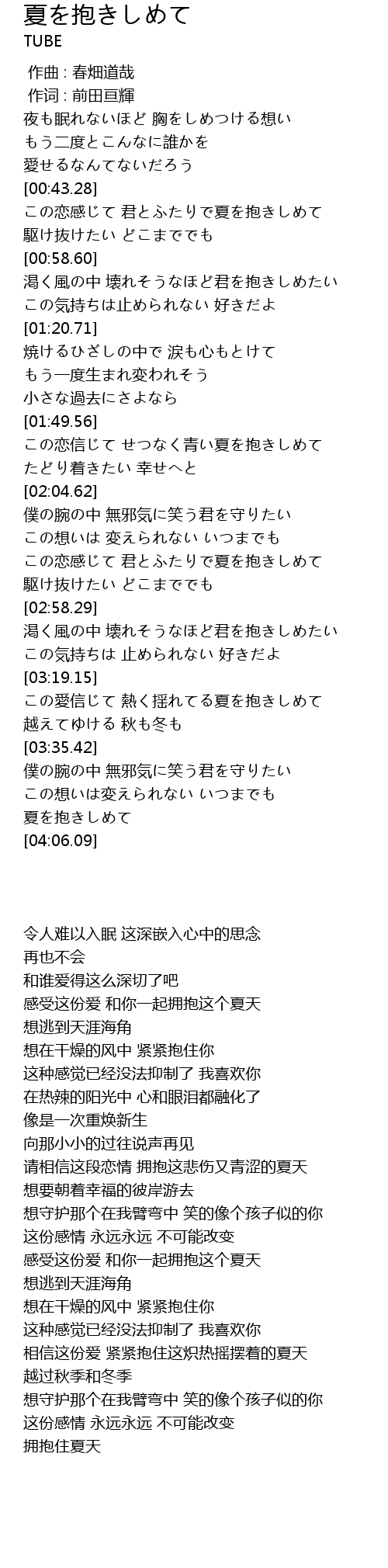 | [03:56.65] | 夏を抱きしめて |