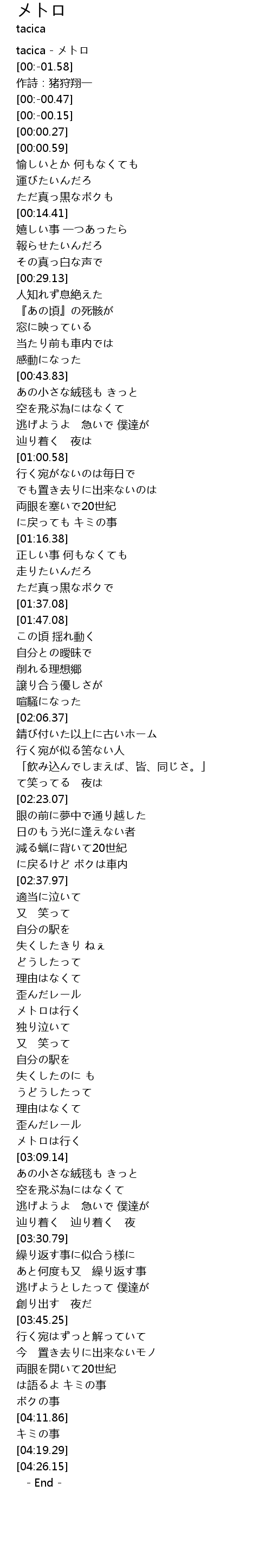 | [00:-02.00] | tacica - メトロ |