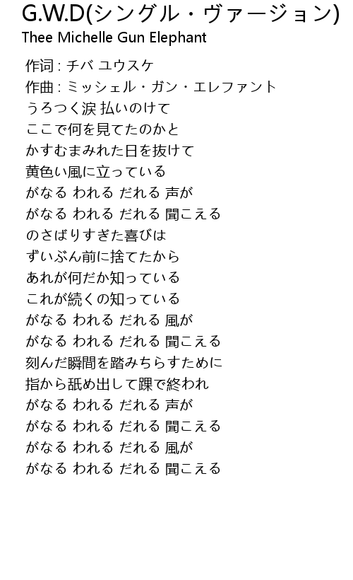 | [00:01.000] | 作曲 : ミッシェル・ガン・エレファント |
