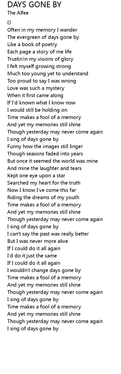 | I wouldn't change days gone by | |