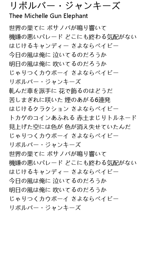 | 歌手 | Thee Michelle Gun Elephant |