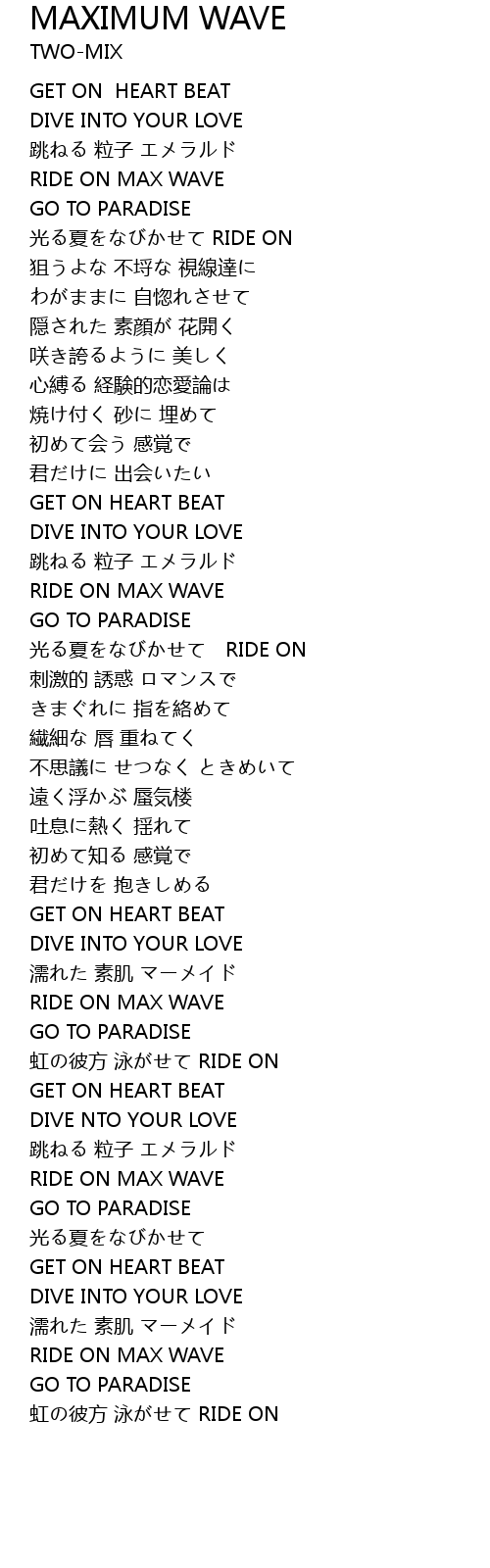 | [01:33] | 光る夏をなびかせて RIDE ON |