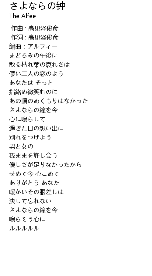 | [00:01.00] | 作词 : 高见泽俊彦 |