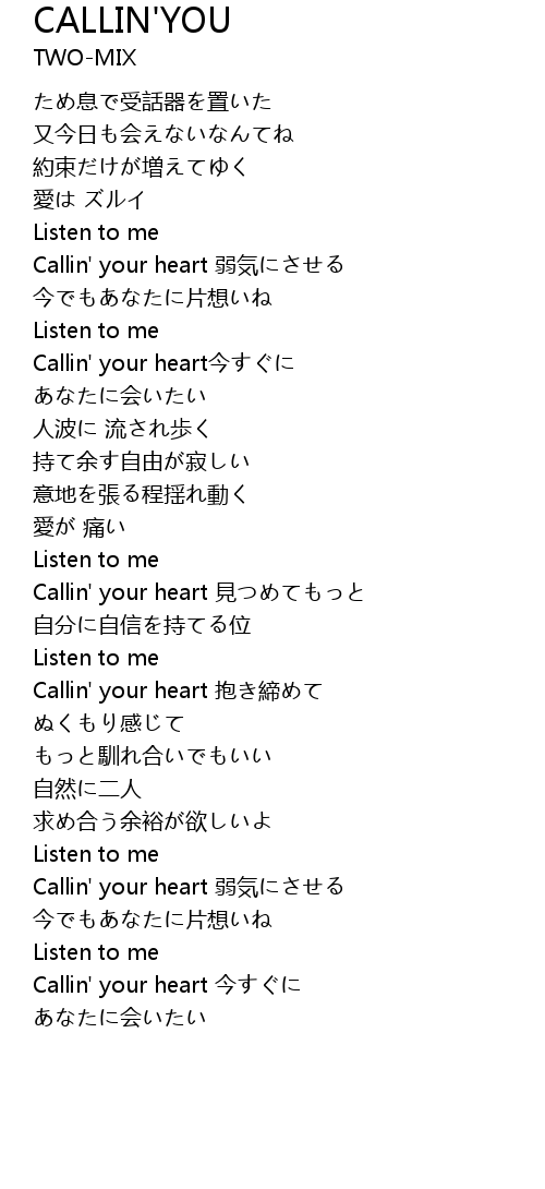 | 歌曲 | CALLIN'YOU |