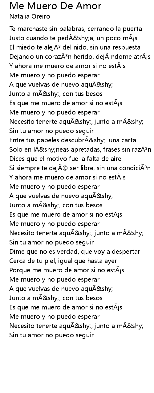 | Y ahora me muero de amor si no estás | |