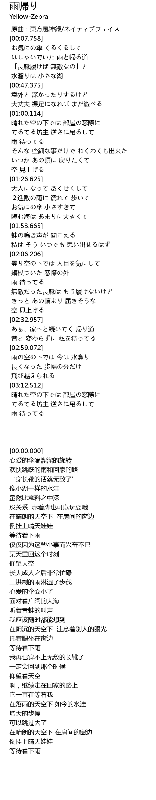 | [00:27.787] | はしゃいでいた 雨と帰る道 |