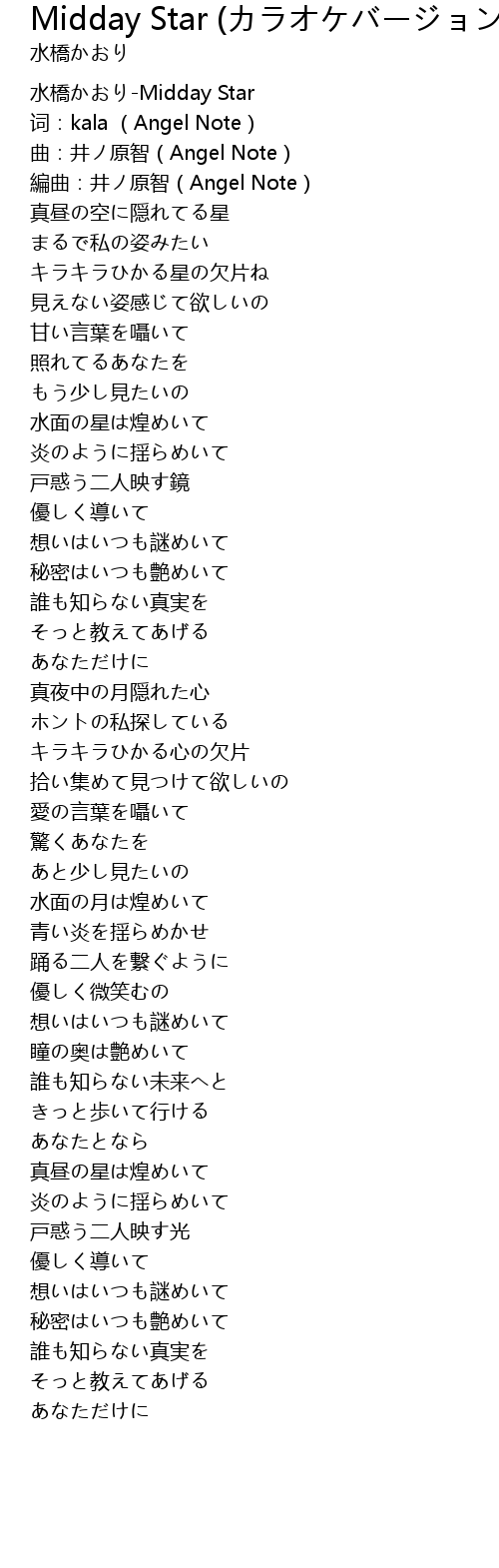 | 歌曲 | Midday Star (カラオケバージョン) |