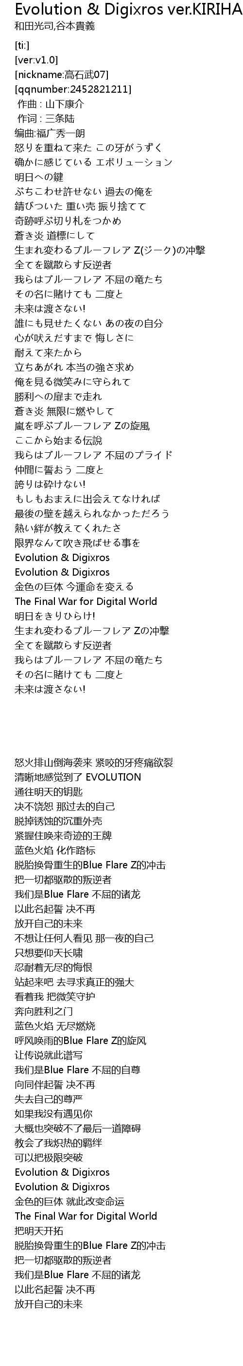 | [03:40.89] | 生まれ変わるブルーフレア Zの冲撃 |