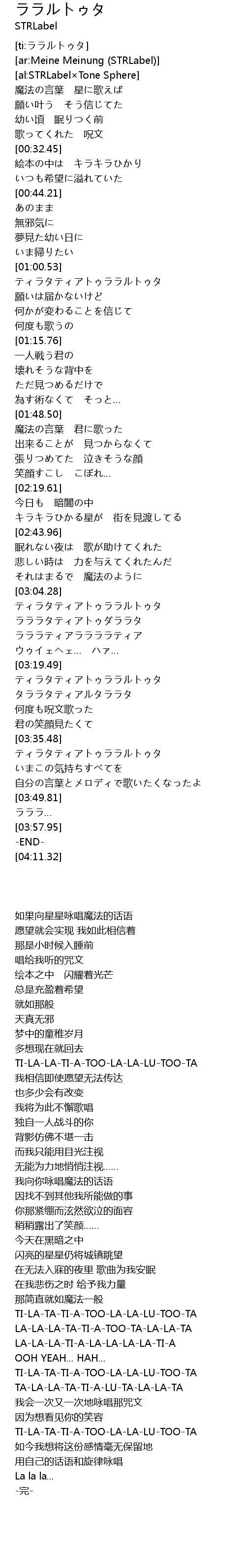 | [03:24.17] | TA-LA-LA-TA-TI-A-LU-TA-LA-LA-TA |