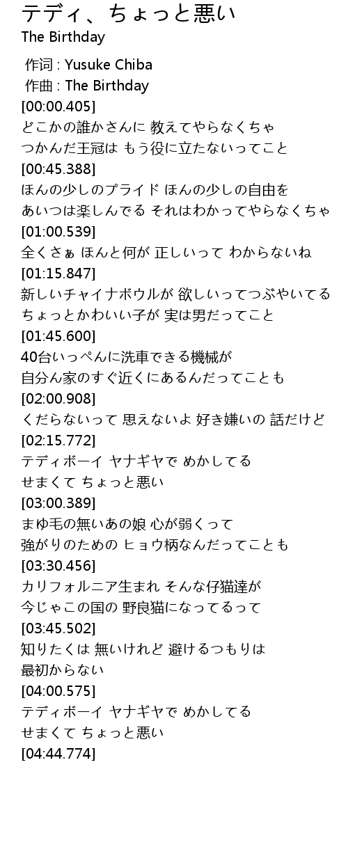 | [00:00.202] | 作曲 : The Birthday |
