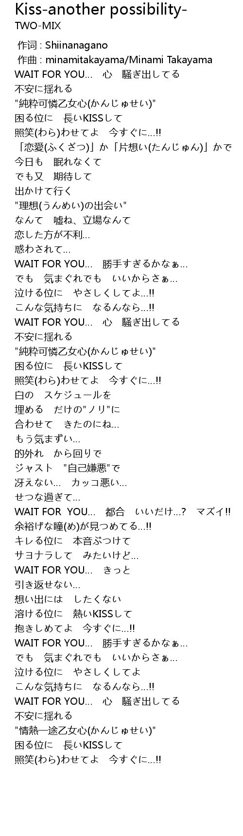 | [01:38] | WAIT FOR YOU… 勝手すぎるかなぁ… |