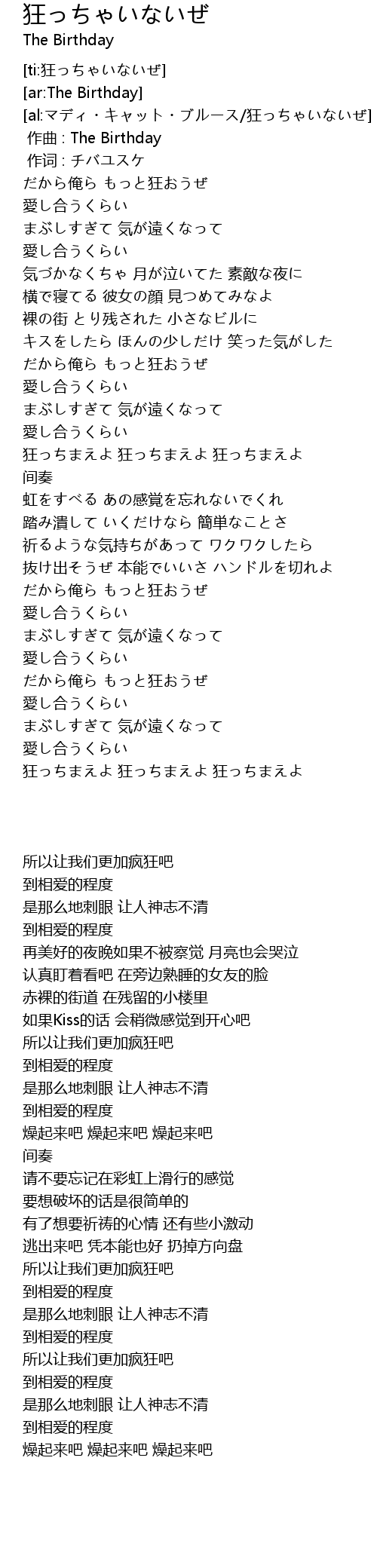 | [00:00.00] | 作曲 : The Birthday |
