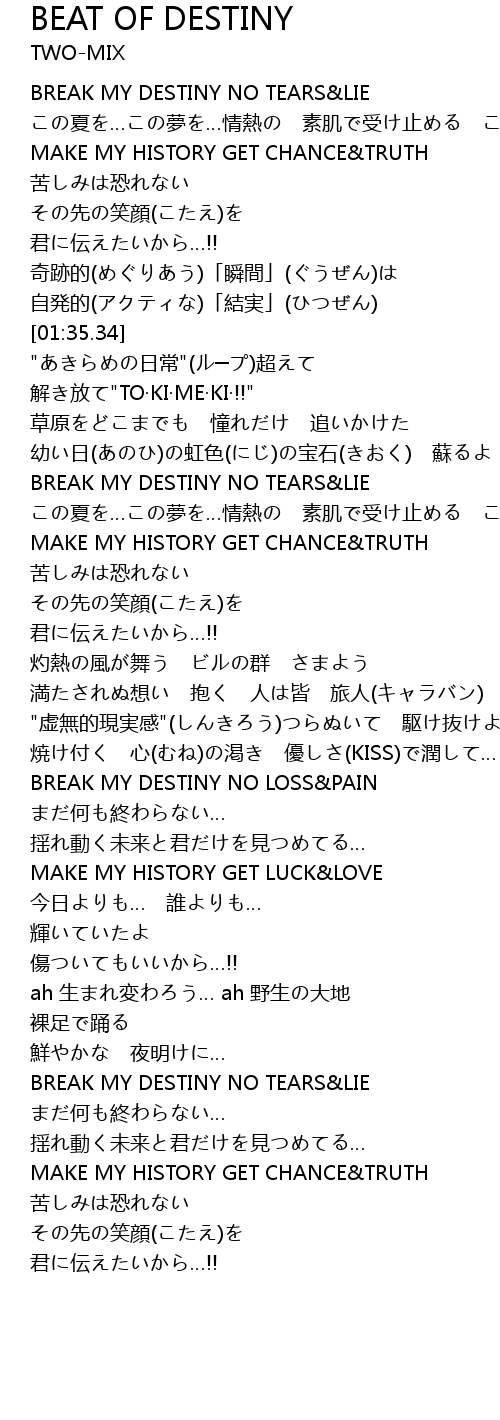 | [01:55.03] | BREAK MY DESTINY NO TEARS&LIE |