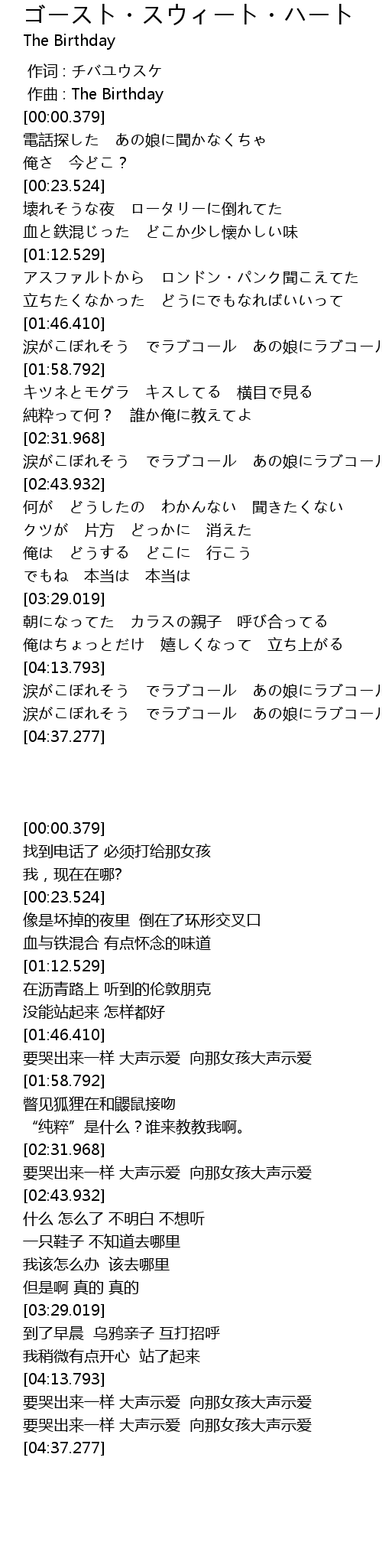 | [04:25.391] | 涙がこぼれそう でラブコール あの娘にラブコール |