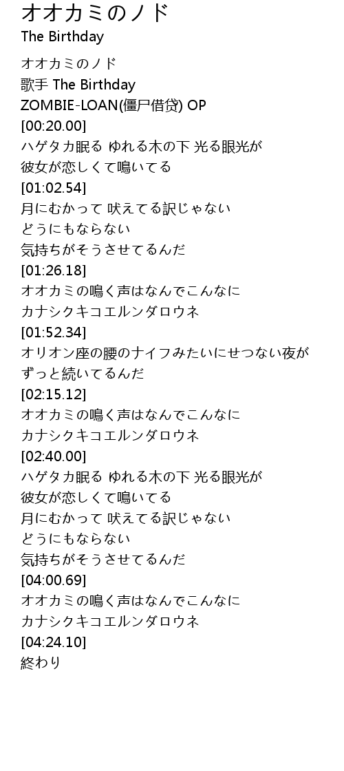 | [00:00.00] | オオカミのノド |