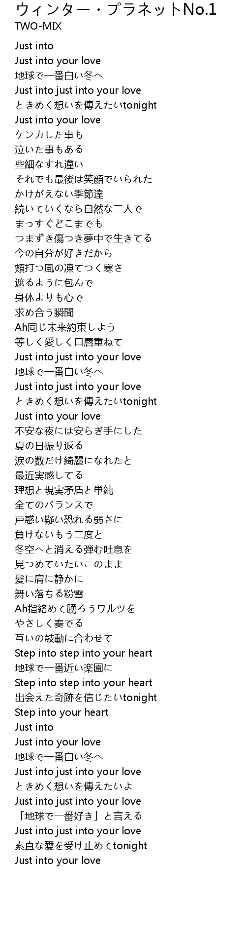 | 歌曲 | ウィンター・プラネットNo.1 |