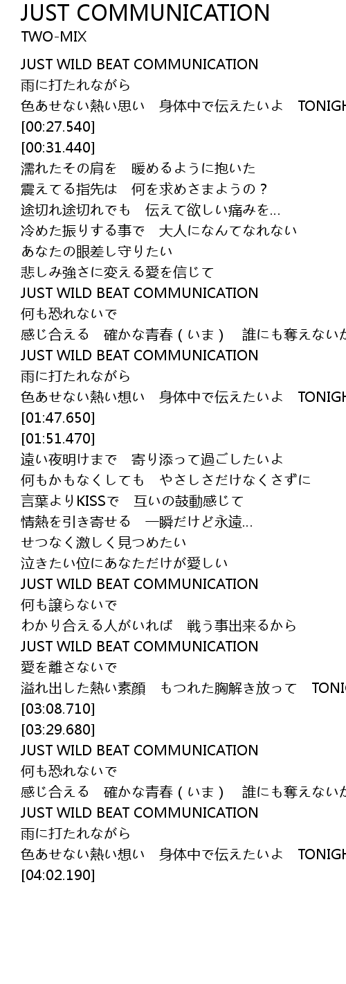 | [02:51.880] | JUST WILD BEAT COMMUNICATION |