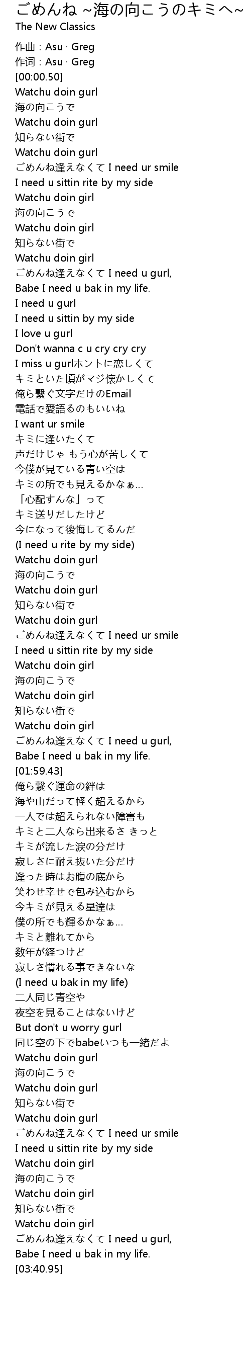 | [03:35.33] | ごめんね逢えなくて I need u gurl, |