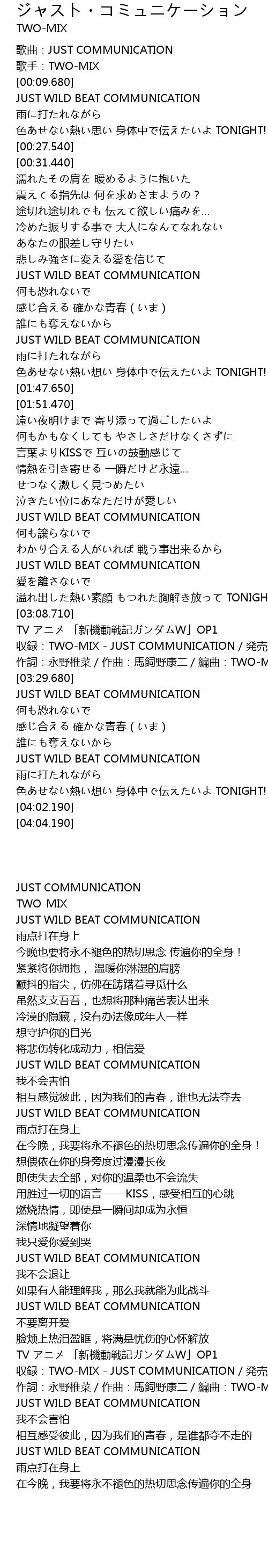 | [00:00.0] | 歌曲:JUST COMMUNICATION |