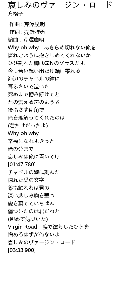 | [03:07.700] | Virgin Road 涙で濡らしたひとを |