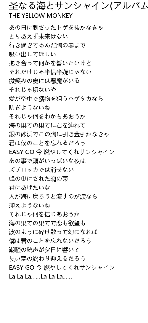 | [03:49.00] | EASY GO 今 燃やしてくれサンシャイン |