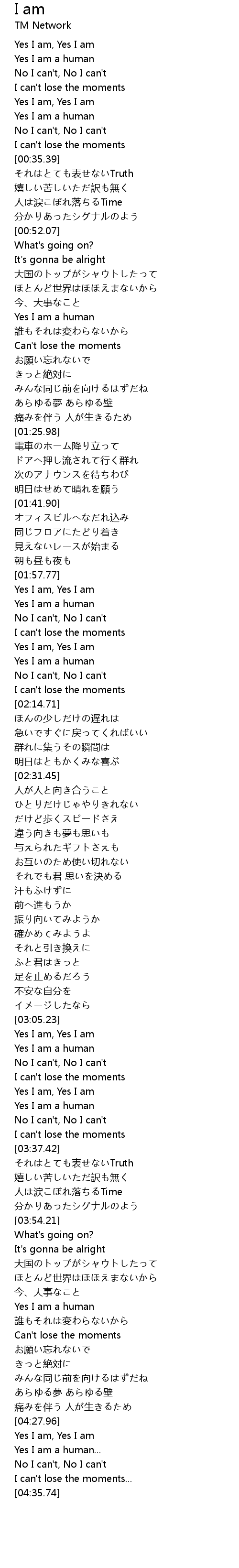 | [03:29.36] | Yes I am, Yes I am |