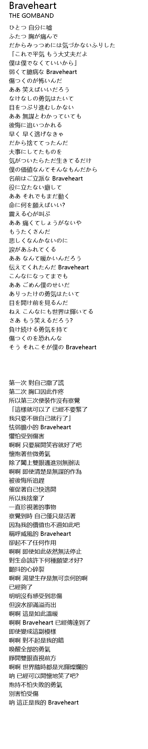 | [00:43.51] | 怯弱膽小的 Braveheart |