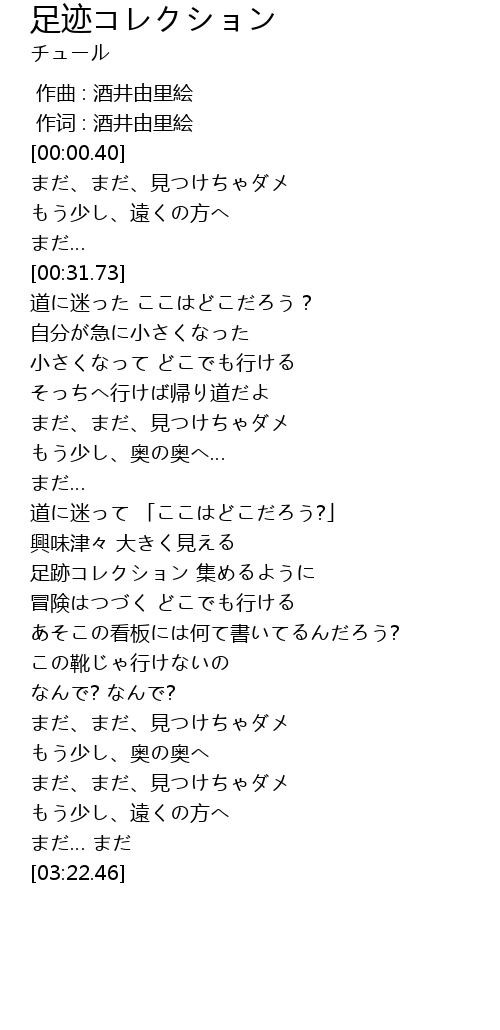 | [01:46.92] | 足跡コレクション 集めるように |