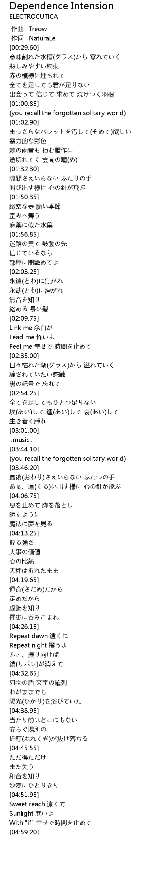 | [04:32.90] | 刃物の盾 文字の羅列 |